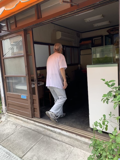 近所の会社のお兄さんたちがカウンターに座り、奥にいる我が神とおかみさんとおしゃべりをしていました。それはまるで引越し準備の途中段ボールに囲まれて休憩をしている時のような雰囲気でした。 帰ろうかな。でもせっかくなのでご挨拶だけでもして帰ろうか。どうしよう・・・。すると