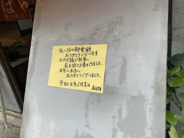 雨戸が半分閉まっていて暖簾も出ていない。これは営業はしていないということ? 今月末までではなくひょっとしてもう閉めちゃったの? 胸が張り裂ける思いでチラっと中をのぞいてみました。