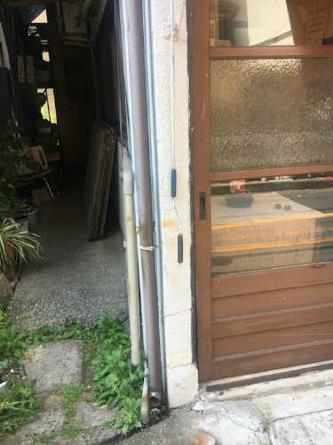 ガラガラガラ〜ッと新たに店内に入って来た人はテレビ脇の鏡を利用してチェックします。